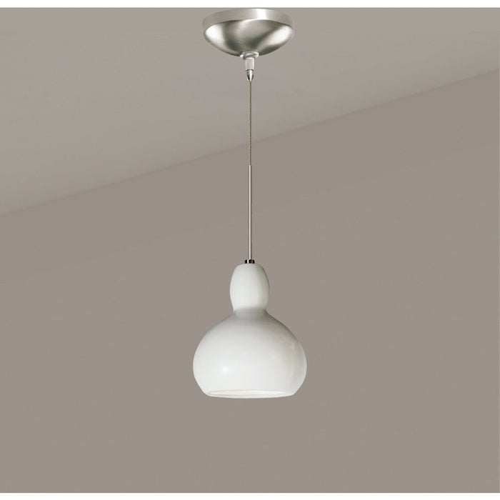 Petite and sporting the abundant curves found in nature, like the gourds that inspired it, the Venus Low Voltage Mini Pendant is naturally sensual. The rich matte white glaze enhances the smooth surface of this one-of-a-kind pendant light. The opaque ceramic shade blocks glare while providing generous energy efficient down-lighting.