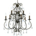 Curvaceous clean lines compose a base showcasing sparkling hand cut crystal, in the Ashton Collection. The classic timeless frame hand painted in English Bronze is updated with a modern pendalogue clear hand cut crystal, for a whimsical elegance, making this chandelier sparkle with grandeur in any space.