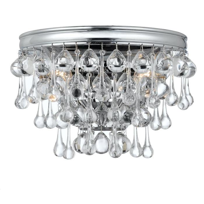 The sparkle of blown glass, paired with the gleam of polished chrome, give this sconce a modern elegance. Sleek and contemporary, the Calypso Collection is decorated with cascading crystal clear smooth glass balls and teardrops that really reflect the light. The collection's design was based on a custom chandelier created for a hip, retro restaurant, and it's perfect for any space that needs a little extra sparkle and glamour. These versatile fixtures are stunning in a dining room or entryway, hung over a kitchen island, lighting a hallway or providing sparkle in a closet or even a little girl's bedroom.