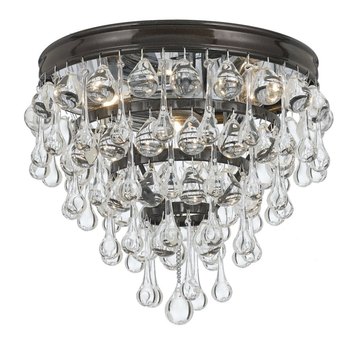 The sparkle of blown glass, paired with the gleam of vibrant bronze, give this ceiling mount a modern elegance. Sleek and contemporary, the Calypso Collection is decorated with cascading crystal clear smooth glass balls and teardrops that really reflect the light. The collection's design was based on a custom chandelier created for a hip, retro restaurant, and it'ss perfect for any space that needs a little extra sparkle and glamour. These versatile fixtures are stunning in a dining room or entryway, hung over a kitchen island, lighting a hallway or providing sparkle in a closet or even a little girl's bedroom.