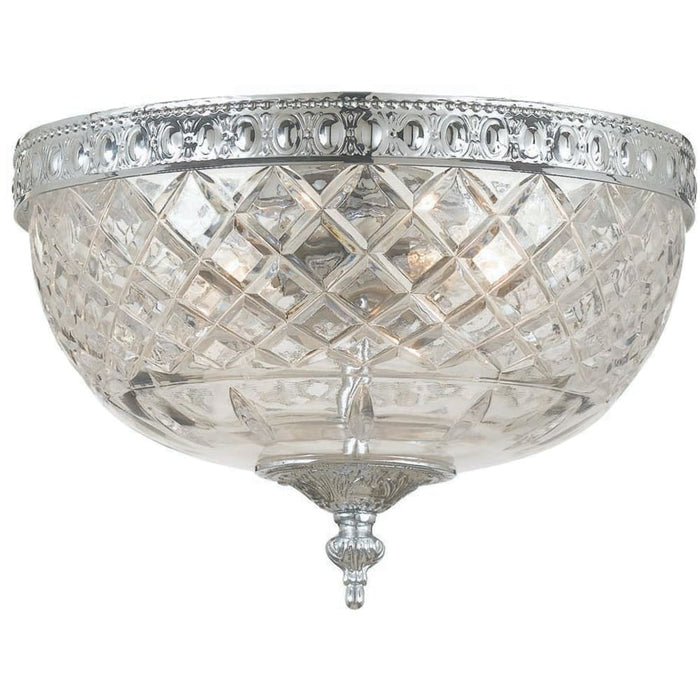 The ceiling mount collection beautifully pairs a solid circular brass frame with a cut crystal bowl. Finished in polished chrome, the stunning combination of brass and crystal are the perfect accent to any traditional room in your home.