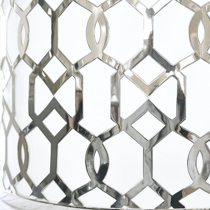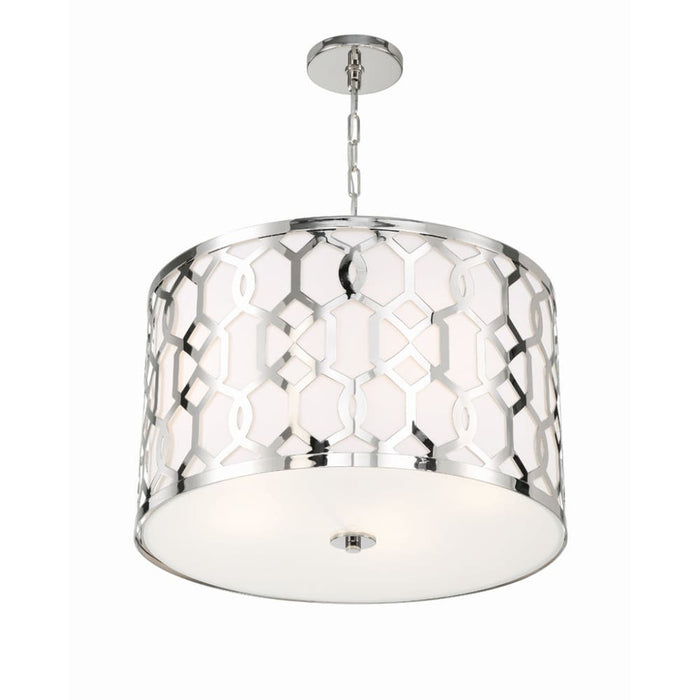 A striking geometric statement; the Jennings collection pairs Libby Langdon’s signature classic design with a modern pattern. Stunning in Polished Nickel, the chandelier adds a bit of unexpected glamour to any room. Finished with a glass diffuser to soften the light, it is the perfect marriage of classic and modern.