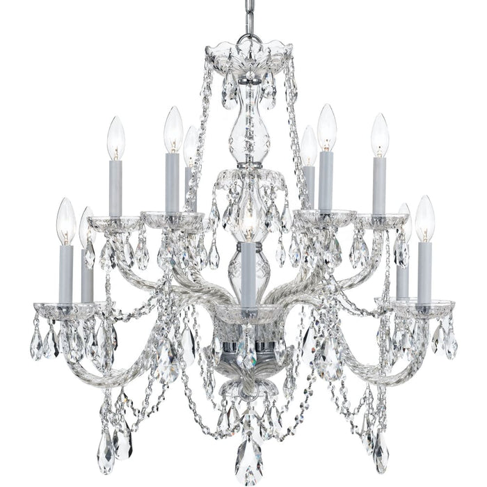 Traditional Crystal 12 Light Italian Crystal Polished Chrome Chandelier