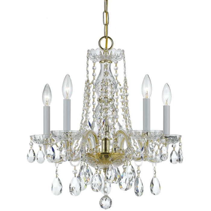 Traditional crystal lighting fixtures are classic, timeless, and elegant. Crystorama's opulent glass arm polished brass mini chandelier dressed in clear Swarovski strass crystal is nothing short of spectacular.