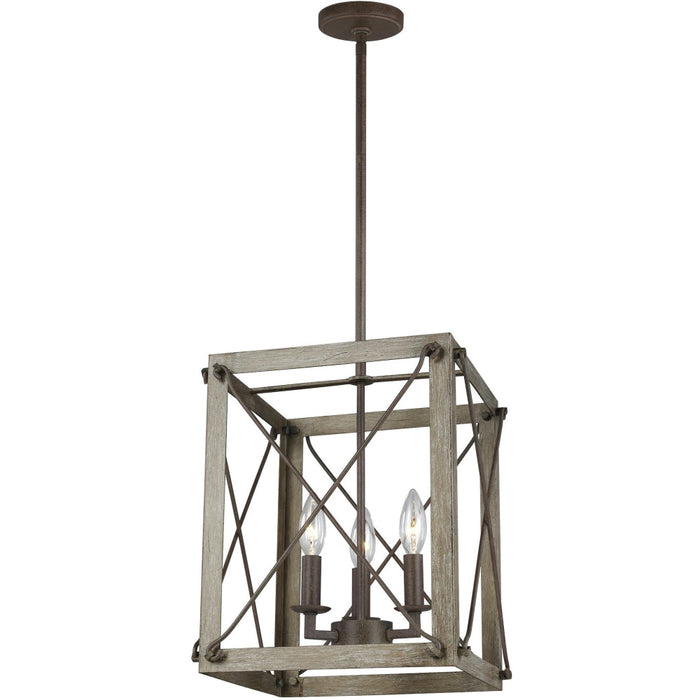 Sea Gull Lighting Thornwood Washed Pine Weathered Iron Pendant 6526303-872