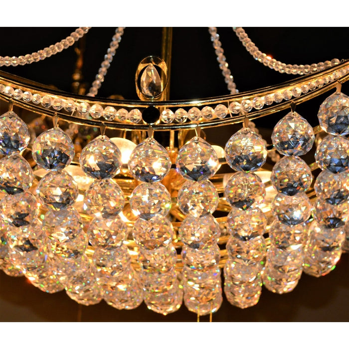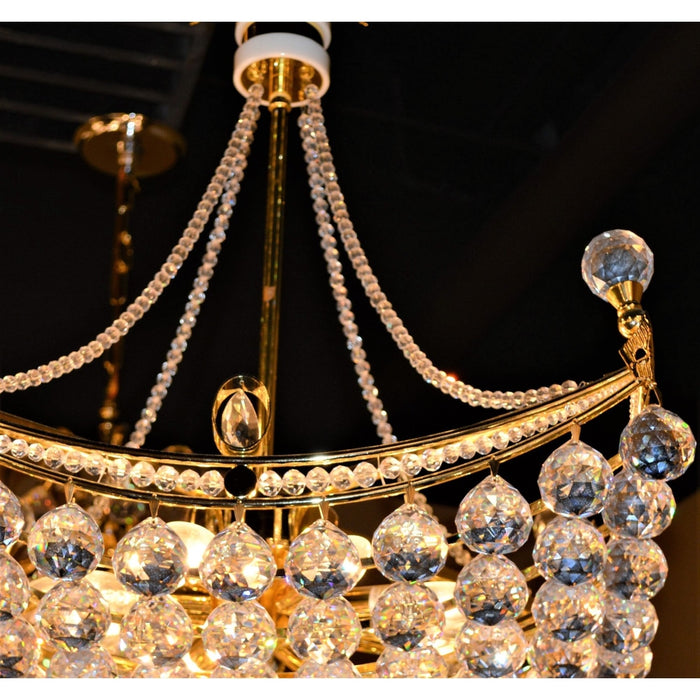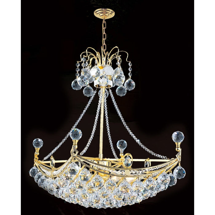 This stunning 6-light Crystal Chandelier uses only the best materials and quality workmanship ensuring a beautiful heirloom quality piece. Featuring a radiant gold finish and finely cut premium grade crystals with a lead content of 30%, this elegant chandelier will give any room sparkle and glamour. HSL Worldwide Lighting Corporation headquartered in Hayward, CA, is a privately owned manufacturer of high-quality crystal chandeliers, pendants, flush mounts, sconces, and custom decorative lighting products for the residential, hospitality and commercial building markets. Their master craftsmen and designers pride themselves on their attention to detail. Their exclusive high-quality crystals meet all standards of perfection. Every crystal piece possesses lead oxide of 30%, cut sharply by a specialized cutting machine then polished precisely by using the latest technology combined with old world knowledge to produce superior sparkle and prismatic brilliance. Worldwide Lighting’s genuine 30% PbO crystals adorn all of its luxurious crystal fixtures as standard, making it an ideal choice for consumers looking for a reliable crystal quality at an exceptional value. With over sixty years of combined experience in the lighting industry, they have produced exceptional quality illumination worldwide seen in prestigious homes, hotels, restaurants, casinos, and churches across the country. Worldwide Lighting welcomes the opportunity to illuminate yours.