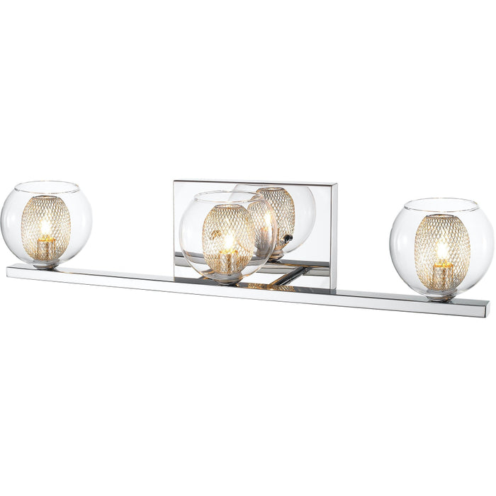 This 3 Light Vanity will bring modern elegance to your décor. The chrome fixture is paired with clear glass.