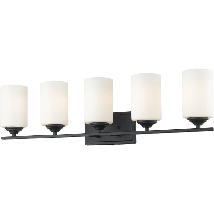 The circular base and the waterfall arms of the Bordeaux family is modernized by the soft matte opal shades which is paired with bronze fittings.