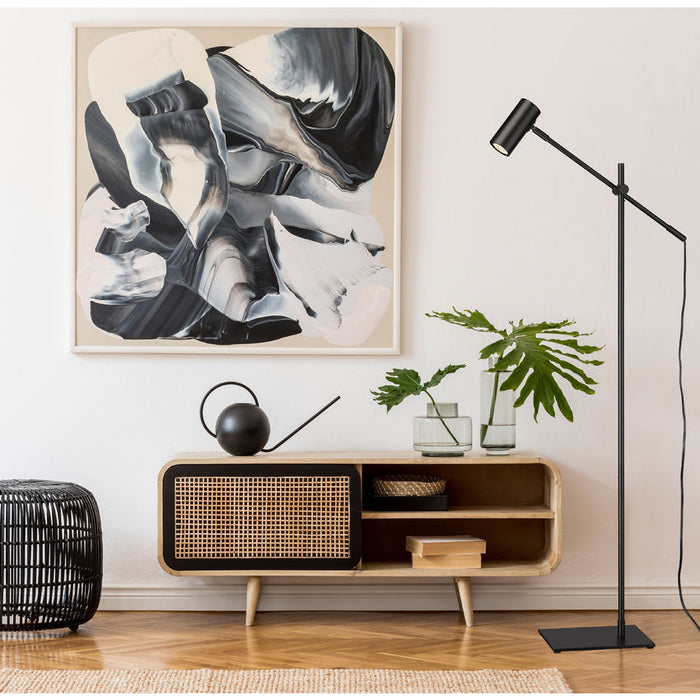 This contemporary floor lamp with a cylindrical shade will brighten up your home office or living room. Serving as the ultimate task light, this fixture is constructed of steel in a matte black finish for a sleek and simplistic appeal.