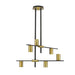 Plane geometry meets tribal heritage in the classic design of the Calumet six-light chandelier. Suited to both contemporary and transitional spaces, this fixture offers a mix of modern and industrial, showcasing bold matte black finish steel in a linear frame with perpendicular arms nestling warm olde brass finish steel shades. Two tiers of lighting sends illumination upward and downward.