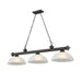 Blending a rich bronze finish with three white linen glass shades, this traditional metal billiard light adds an elegant aesthetic to interior décor. Suspend this stylish fixture in a kitchen, dining room, or game room to elevate your space with a warm, inviting glow.