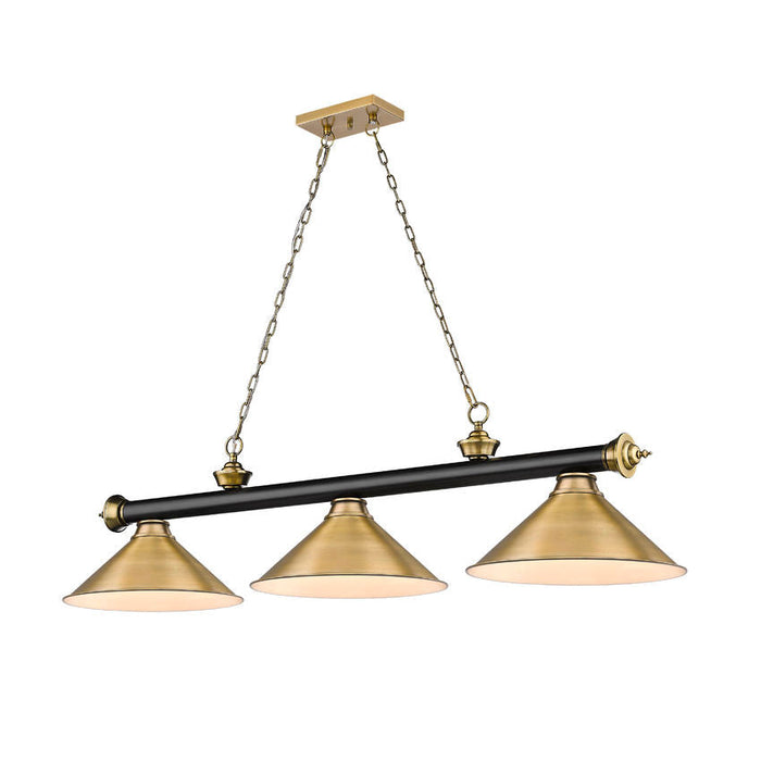 Z-Lite Cordon Matte Black Rubbed Brass 3 Light Billiard 2306-3MB-RB-RB15