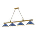 Upgrade your game room with the Z-Lite Cordon Rubbed Brass 4 Light Billiard 2306-4RB-MNB. The stylish and functional Billiard Light provides ample lighting using either Incandescent or LED Bulbs for those intense matches, while adding a touch of elegance with its Rubbed Brass Finish and four Navy Blue Shades for a sophisticated look that enhances any home. Elevate your billiards experience today! Be sure to check out the rest of the Z-Lite Cordon Collection for additional Finish and Shade combinations.