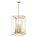With an emphasis on a striking glam-inspired industrial motif, this decadent light fixture pays tribute to the trending motif of farmhouse and modern. The Easton collection offers a twelve-light chandelier with linear elements and an orderly aesthetic ideal for heightened minimalist décor schemes. Candelabra bulb mounts align in a graduated arrangement, centered in full view thanks to a dual-layered openwork gleaming rubbed brass finish metal frame.