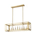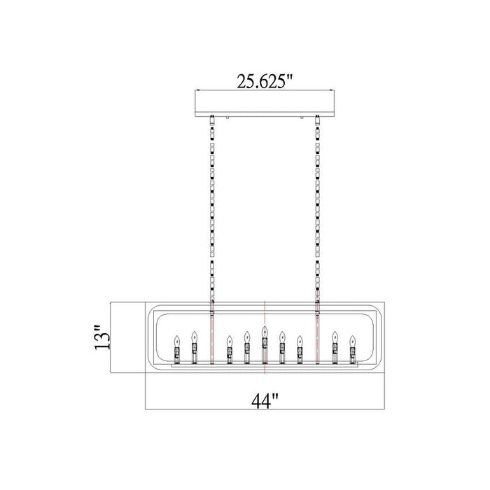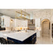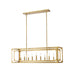 Create optical glam style in a kitchen or entertaining space composed of both modern and transitional design appeal. Linear elements and an orderly aesthetic enhance the Easton nine-light island light, adding a romantic theme with charming candelabra bulb mounts set in a graduated arrangement and centered in full view thanks to a dual-layered openwork rubbed brass finish metal frame. Symmetry and minimalism reflect a sought-after effect with limitless personality.