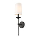 Ideal for a traditional or transitional design scheme, the sleek, elegant Emily sconce creates a warm and inviting atmosphere. This single-light wall sconce features a rich, matte black finish and a classic cloth shade for a softly diffused glow.