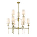 Complete a traditional dining room aesthetic with a classically crafted chandelier that exudes refined elegance. This six-light metal chandelier from the Emily collection elevates a room with its sleek metal frame in a gleaming rubbed brass finish. Six tasteful, off-white cloth shades create a soft, ambient glow for a mood-lifting effect.