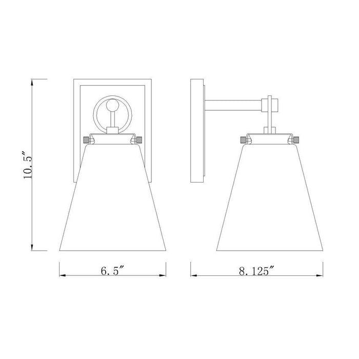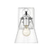 Contemporary bathrooms light up with the chic, delicate design of this one-light wall sconce. With a conical shade crafted of clear glass, it adds a charming motif with a shiny chrome finish hand-tooled steel mount adding festive geometric accents. This light from the Harper collection dazzles in a custom bath space.