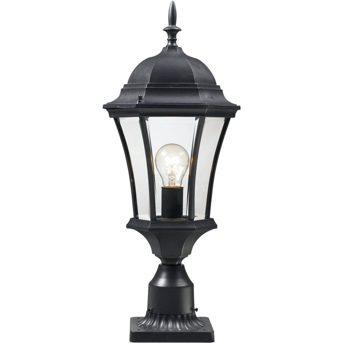 For a bold look, this medium pier mount is sure to please. Using bold detailing finished in black, and clear beveled glass for a bright spill of light, this fixture is sure to create a unique and bold statement. These fixtures are made of aluminum for years of durability.